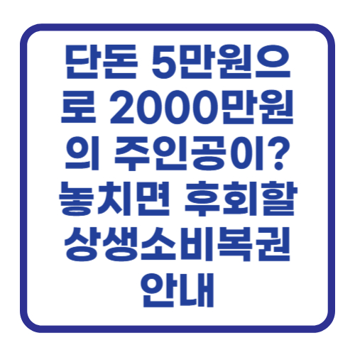 '상생소비복권'은 중소벤처기업부에서 주관하는 행사로, 전통시장과 골목상권 등 소상공인 매장에서 소비한 금액에 따라 복권처럼 추첨 기회를 주는 이벤트예요. 물가도 잡고, 지역 경제도 살리고, 소비자에게는 어마어마한 행운의 기회까지! 말 그대로 모두가 '상생'하는 착한 이벤트라고 할 수 있죠.