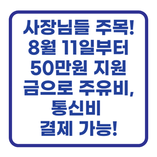 사장님, 요즘 부쩍 오른 유류비랑 통신비 때문에 걱정이 많으셨죠? 저도 가게 운영하면서 매달 나가는 고정비 지출이 정말 만만치 않더라고요. 그런데 정말 반가운 소식이 있습니다! 정부에서 소상공인의 부담을 덜어주기 위해 지원하는 50만원 소상공인 지원금, 이제 통신비와 주유비로도 결제할 수 있게 되었어요! 😊
