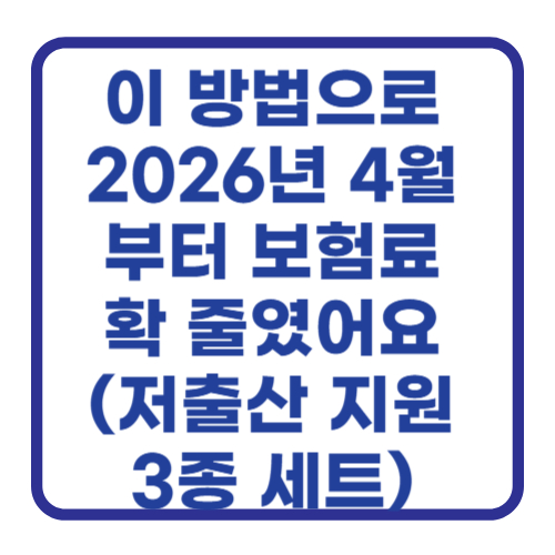 이 방법으로 2026년 4월부터 보험료 확 줄였어요 (저출산 지원 3종 세트)