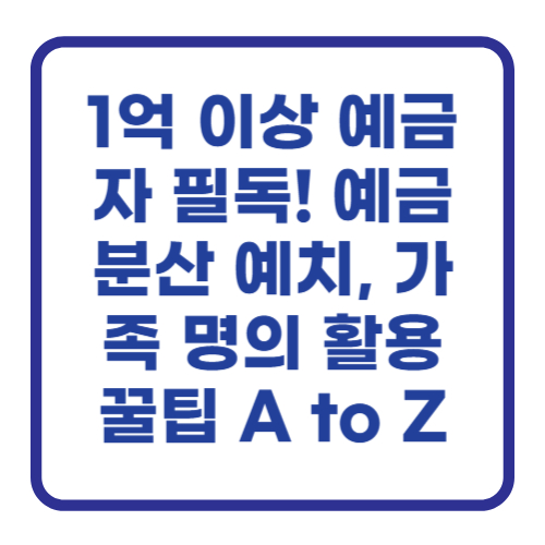 - 가족 명의 활용하기: 보호 한도는 '1인당' 기준이에요. 즉, 같은 은행이라도 남편 명의로 1억 원, 아내 명의로 1억 원을 예치하면 각각 보호받아 총 2억 원이 안전하게 지켜집니다.