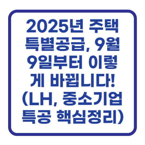 내 집 마련의 꿈, 다들 마음속에 품고 계시죠? 저도 마찬가지인데요. 😊 그런데 어제오늘, 부동산 뉴스를 보셨다면 아마 깜짝 놀라셨을 거예요. 2025년 9월 7일 정부가 발표한 '주택 공급 확대 방안'에 따라, 바로 오늘(9월 9일)부터 주택 특별 공급 제도가 확 바뀌었거든요! LH가 직접 공급을 주도하고, 특히 중소기업 장기근속자를 위한 문이 활짝 열렸다는 소식에 많은 분들이 "이게 도대체 무슨 소리야?" 하고 궁금해하실 것 같아요. 그래서 제가 오늘! 누구보다 빠르고 정확하게 바뀐 내용을 싹 정리해 드리겠습니다.